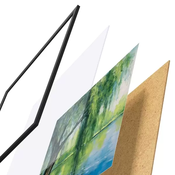 Plakatą sudaro rėmas, pleksiklas, atspausdintas vaizdas ir medžio drožlių plokštės pagrindas. Plakatą galima iš karto pakabinti ant sienos dėl kitoje pusėje esančių laikiklių.