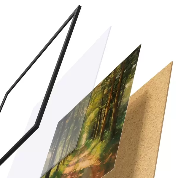 Plakatą sudaro rėmas, pleksiklas, atspausdintas vaizdas ir medžio drožlių plokštės pagrindas. Plakatą galima iš karto pakabinti ant sienos dėl kitoje pusėje esančių laikiklių.