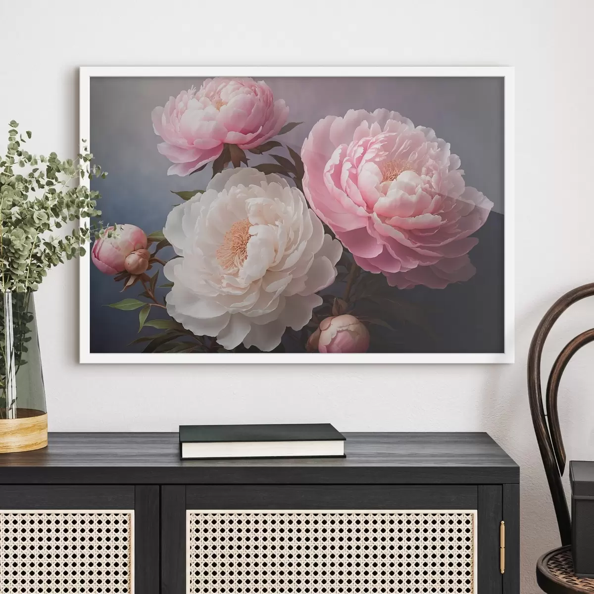 Plakatas Bijūnai tamsiai šviesiame fone Ne f41508