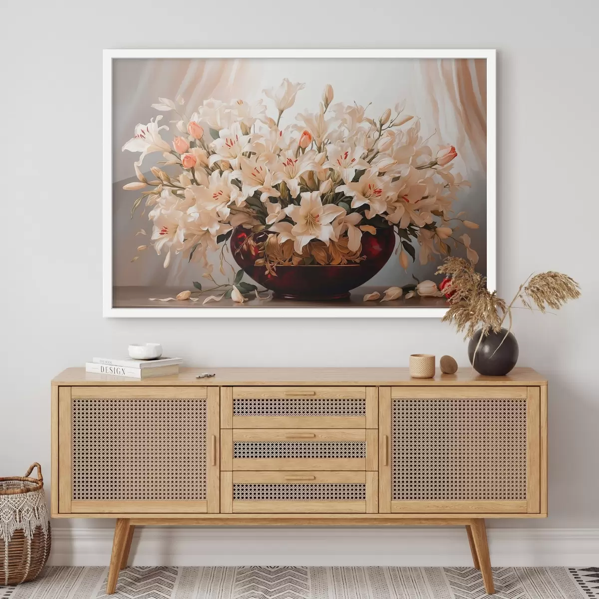 Plakatas Gėlių puokštė raudonoje tūrinėje vazoje f41510