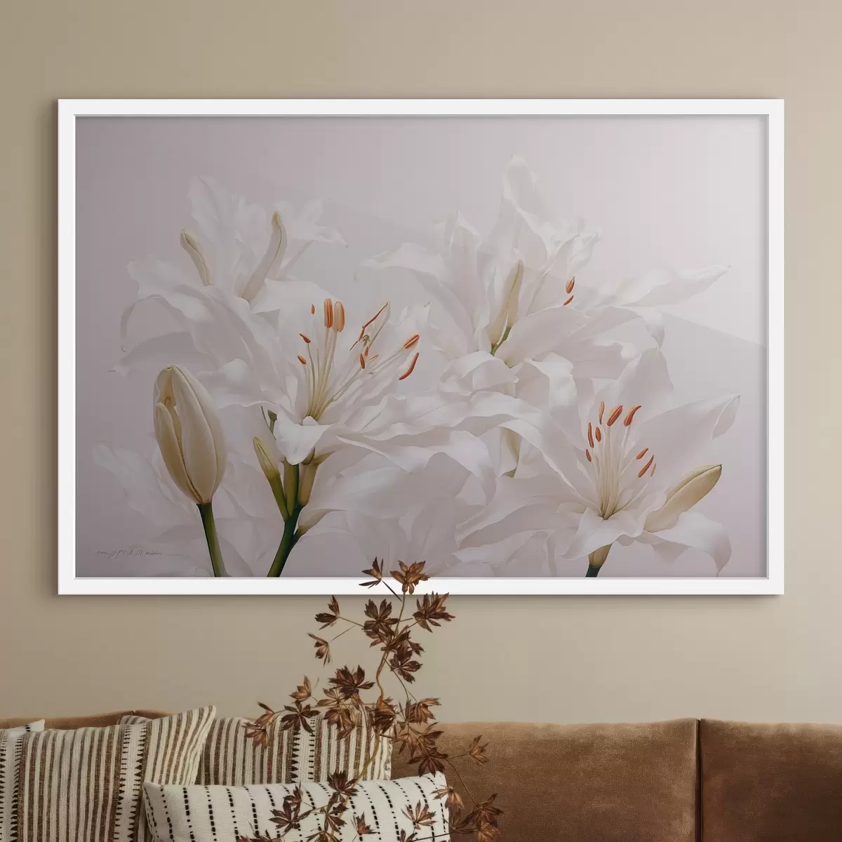 Plakatas Baltos lelijos baltame fone Ne f41513