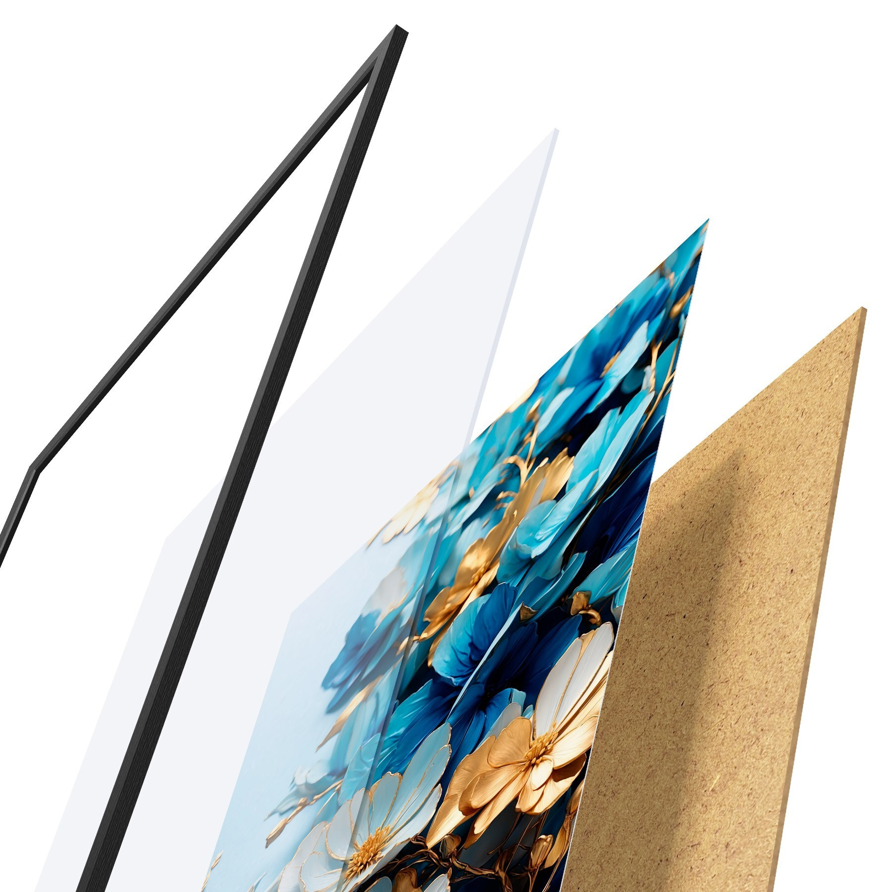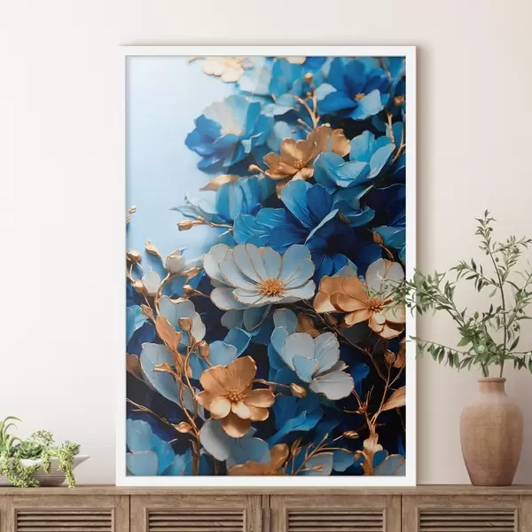 Plakatas Mėlyni ir geltoni žiedai ir stiebai f41514