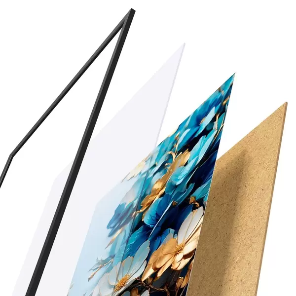 Plakatą sudaro rėmas, pleksiklas, atspausdintas vaizdas ir medžio drožlių plokštės pagrindas. Plakatą galima iš karto pakabinti ant sienos dėl kitoje pusėje esančių laikiklių.