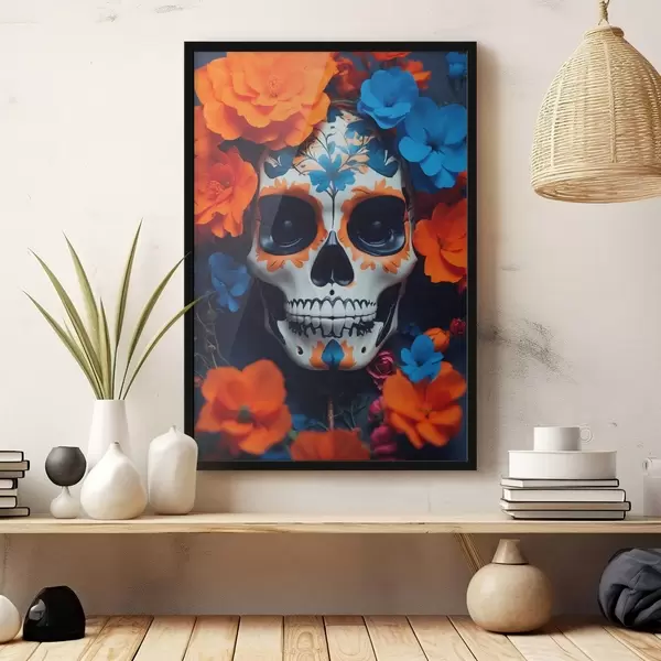 Plakatas Kaukolė su gėlėmis f41526