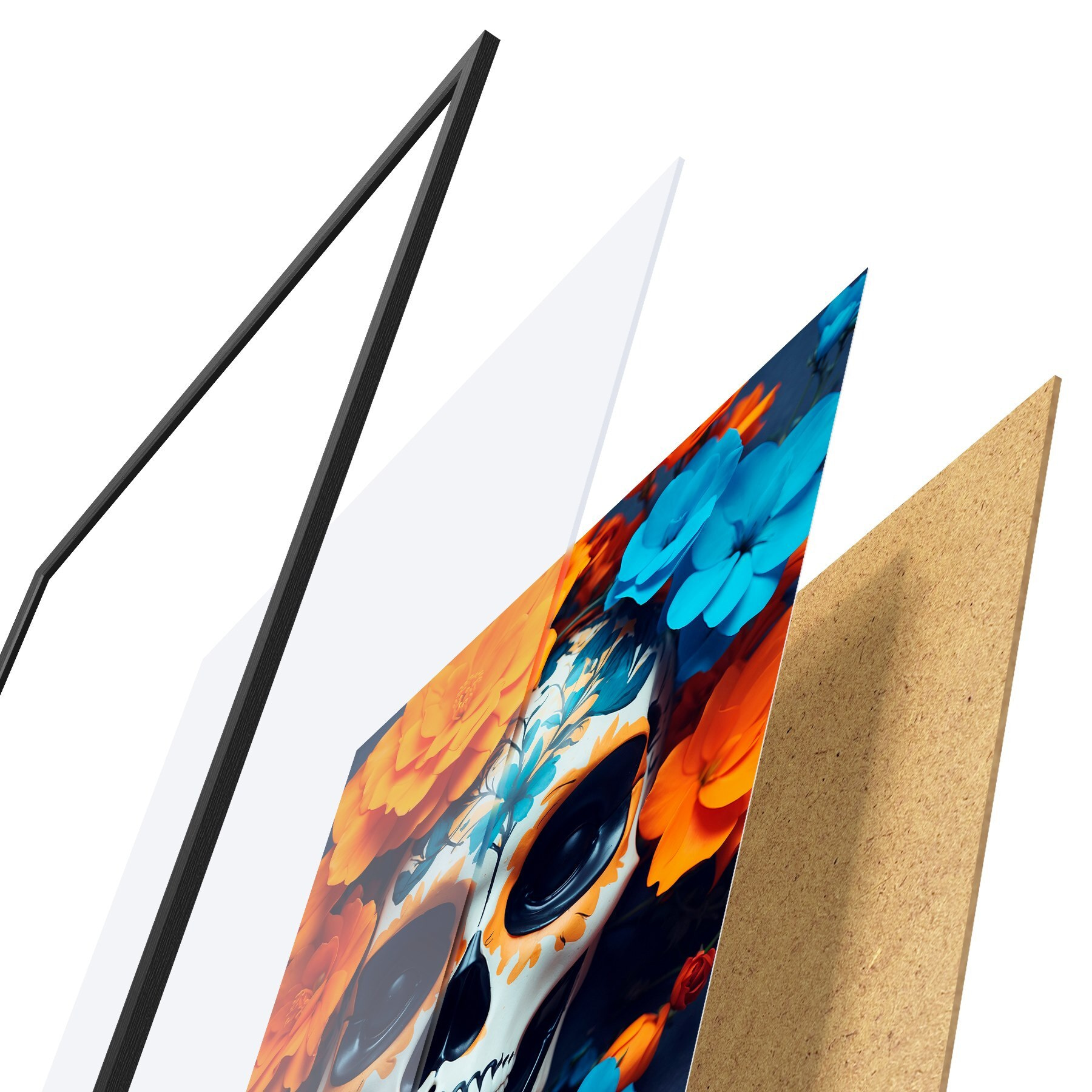 Plakatą sudaro rėmas, pleksiklas, atspausdintas vaizdas ir medžio drožlių plokštės pagrindas. Plakatą galima iš karto pakabinti ant sienos dėl kitoje pusėje esančių laikiklių.