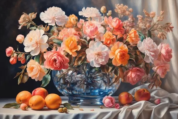 Plakatas Gėlių puokštė permatomoje vazoje ant stalo f41533