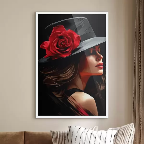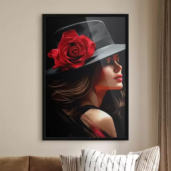 Plakatas Iliustracija mergaitė su skrybėle ir gražia prašmatnia rože f41546