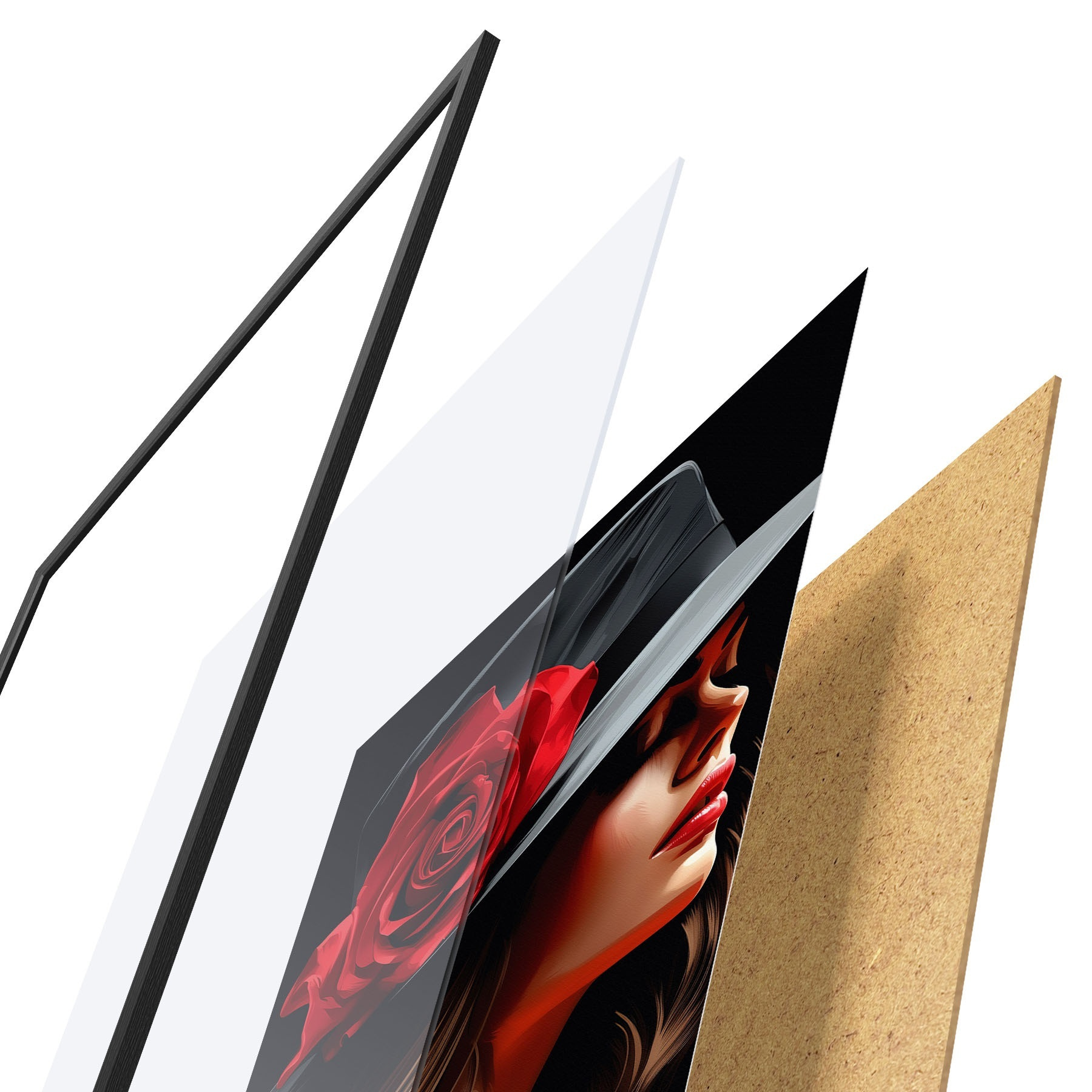 Plakatas Iliustracija mergaitė su skrybėle ir gražia prašmatnia rože Ne f41546