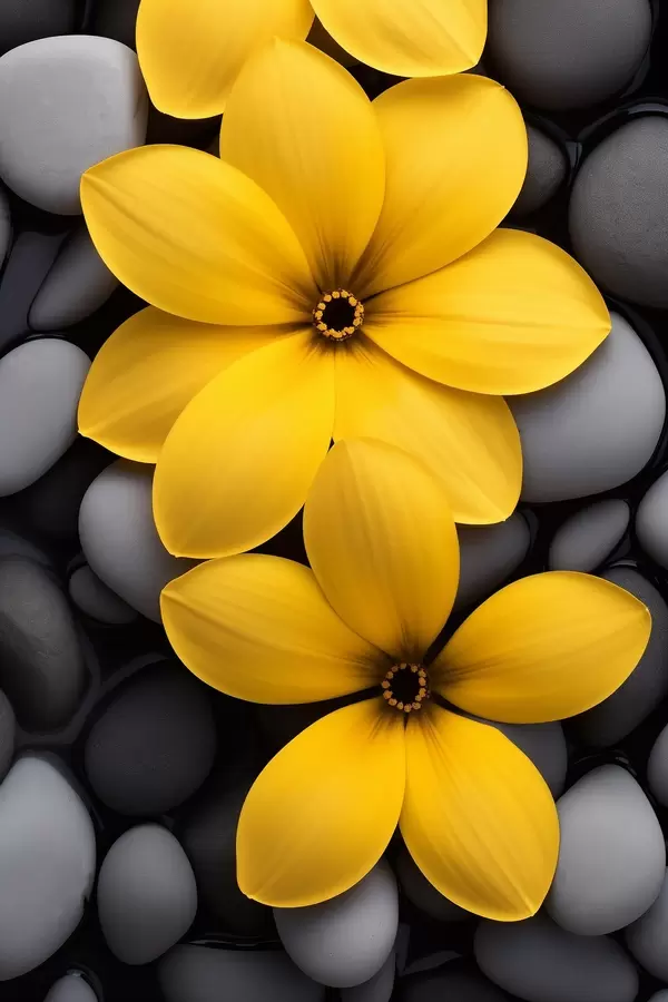Plakatas Geltonos gėlės ant akmens Ne f41547
