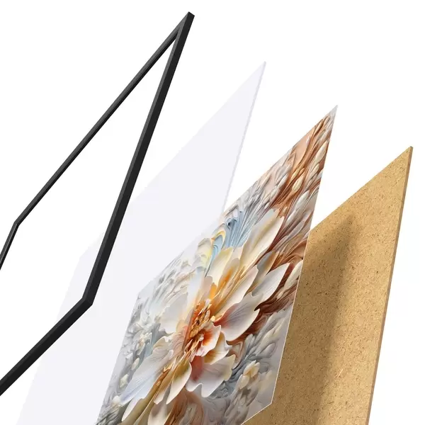 Plakatą sudaro rėmas, pleksiklas, atspausdintas vaizdas ir medžio drožlių plokštės pagrindas. Plakatą galima iš karto pakabinti ant sienos dėl kitoje pusėje esančių laikiklių.