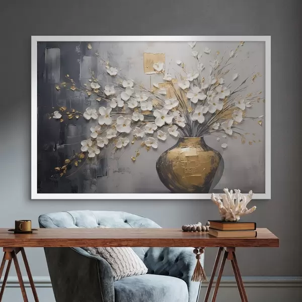Plakatas Tūrinės mažos lengvos gėlės vazoje, aliejinės tapybos imitacija f41558