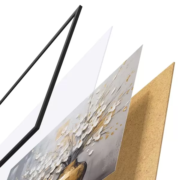 Plakatą sudaro rėmas, pleksiklas, atspausdintas vaizdas ir medžio drožlių plokštės pagrindas. Plakatą galima iš karto pakabinti ant sienos dėl kitoje pusėje esančių laikiklių.