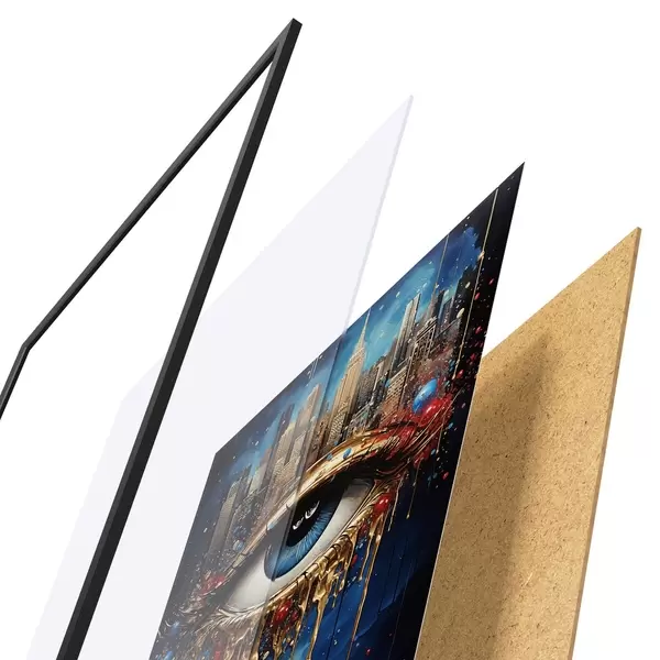 Plakatą sudaro rėmas, pleksiklas, atspausdintas vaizdas ir medžio drožlių plokštės pagrindas. Plakatą galima iš karto pakabinti ant sienos dėl kitoje pusėje esančių laikiklių.