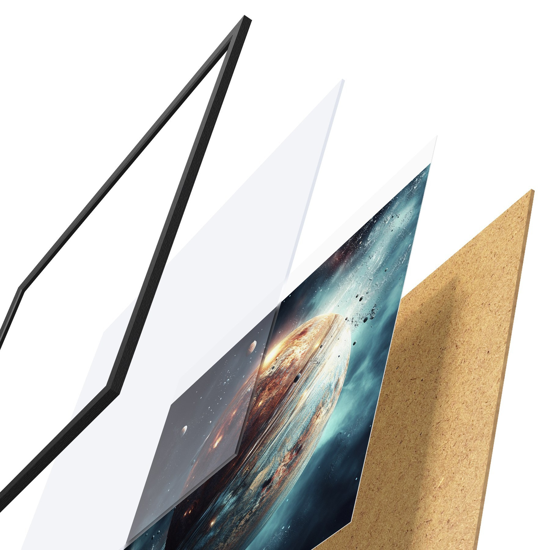 Plakatą sudaro rėmas, pleksiklas, atspausdintas vaizdas ir medžio drožlių plokštės pagrindas. Plakatą galima iš karto pakabinti ant sienos dėl kitoje pusėje esančių laikiklių.