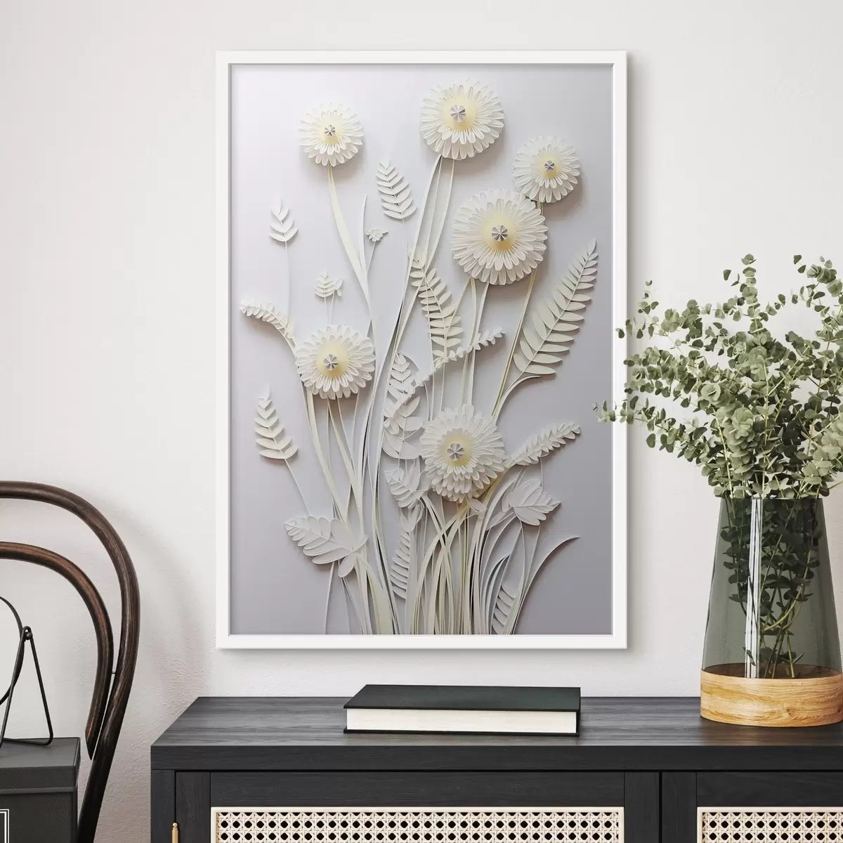 Plakatas Šviesios gėlės baltame fone Ne f41571