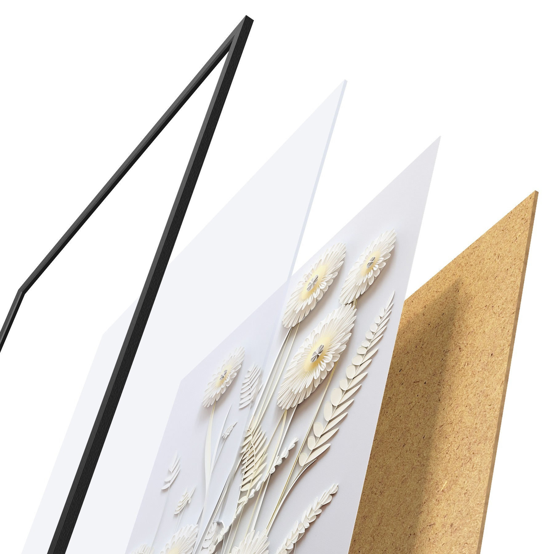 Plakatą sudaro rėmas, pleksiklas, atspausdintas vaizdas ir medžio drožlių plokštės pagrindas. Plakatą galima iš karto pakabinti ant sienos dėl kitoje pusėje esančių laikiklių.