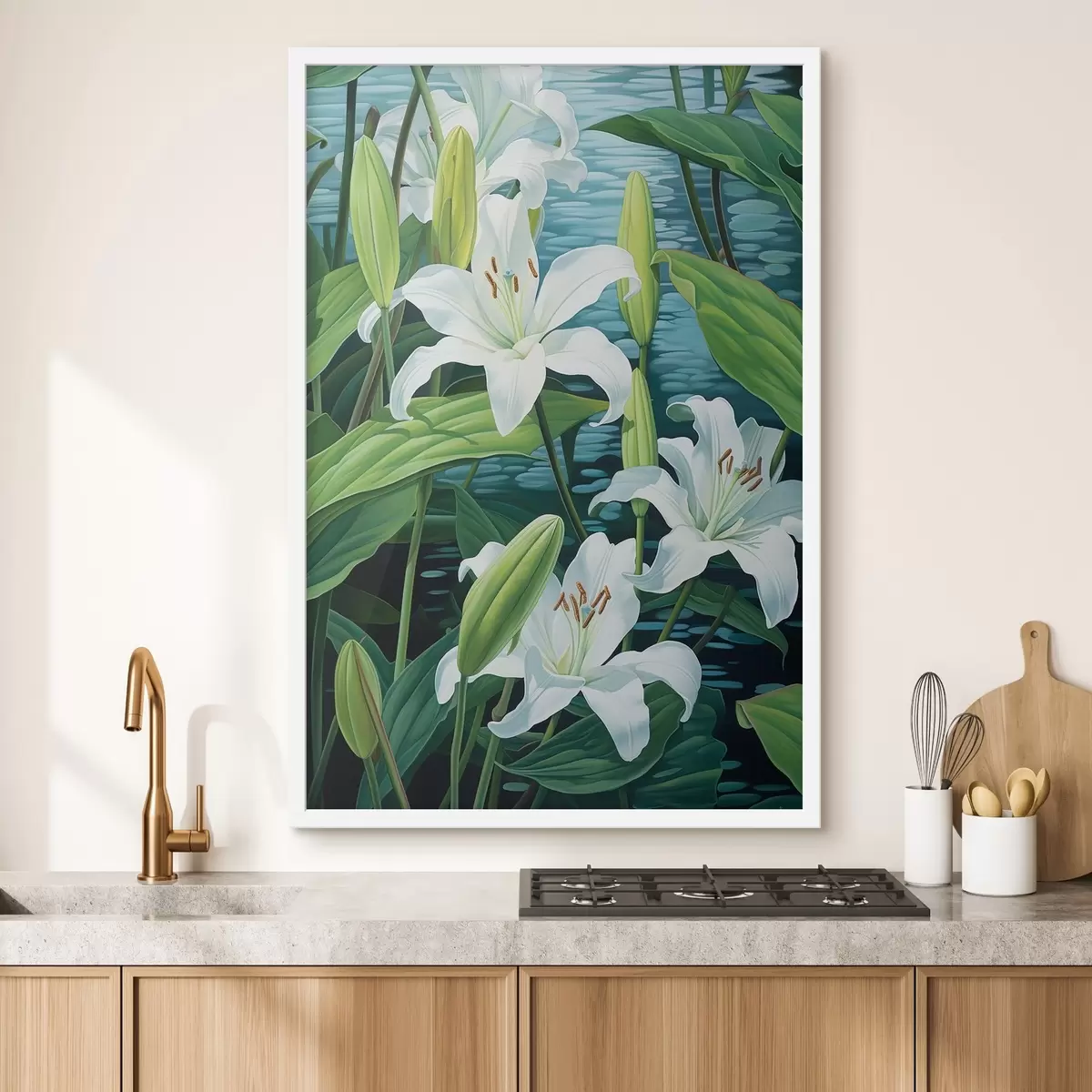 Plakatas Baltos lelijos ant vandens Ne f41573