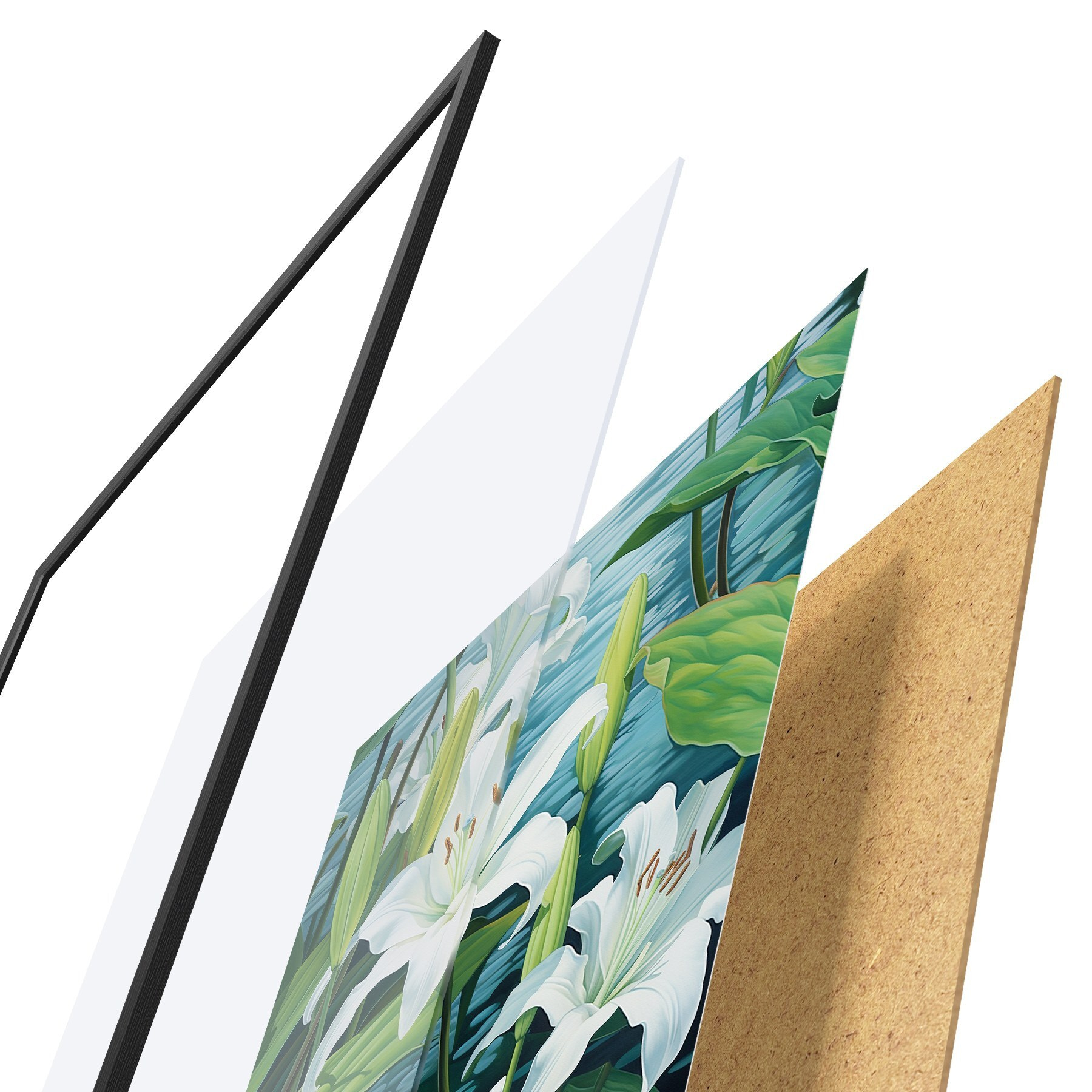 Plakatą sudaro rėmas, pleksiklas, atspausdintas vaizdas ir medžio drožlių plokštės pagrindas. Plakatą galima iš karto pakabinti ant sienos dėl kitoje pusėje esančių laikiklių.