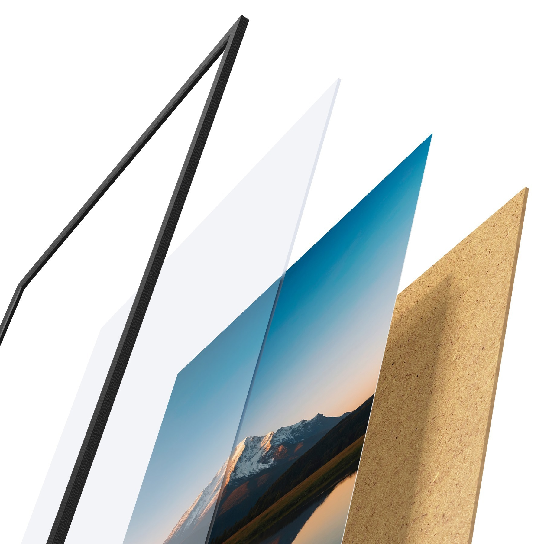 Plakatą sudaro rėmas, pleksiklas, atspausdintas vaizdas ir medžio drožlių plokštės pagrindas. Plakatą galima iš karto pakabinti ant sienos dėl kitoje pusėje esančių laikiklių.