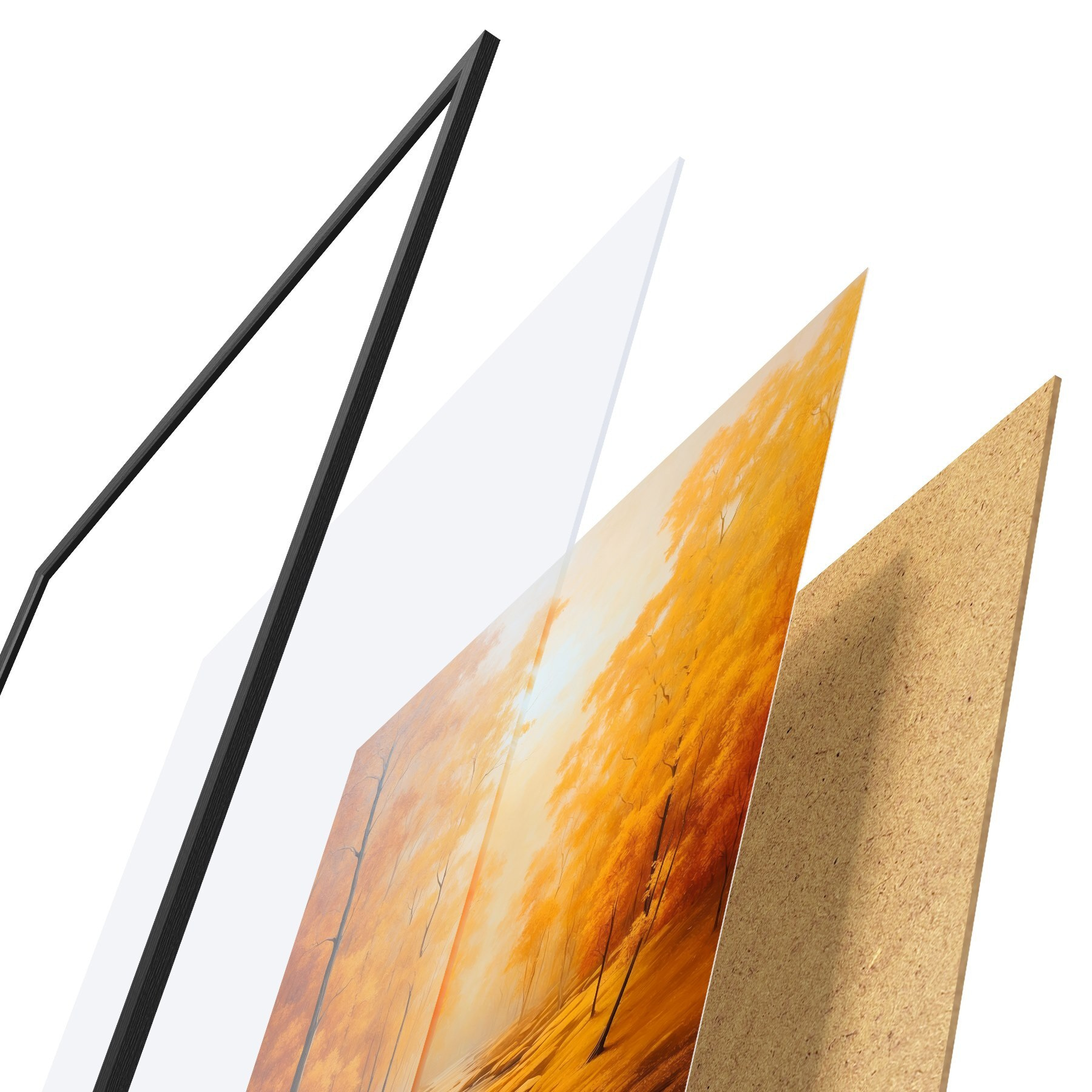 Plakatą sudaro rėmas, pleksiklas, atspausdintas vaizdas ir medžio drožlių plokštės pagrindas. Plakatą galima iš karto pakabinti ant sienos dėl kitoje pusėje esančių laikiklių.