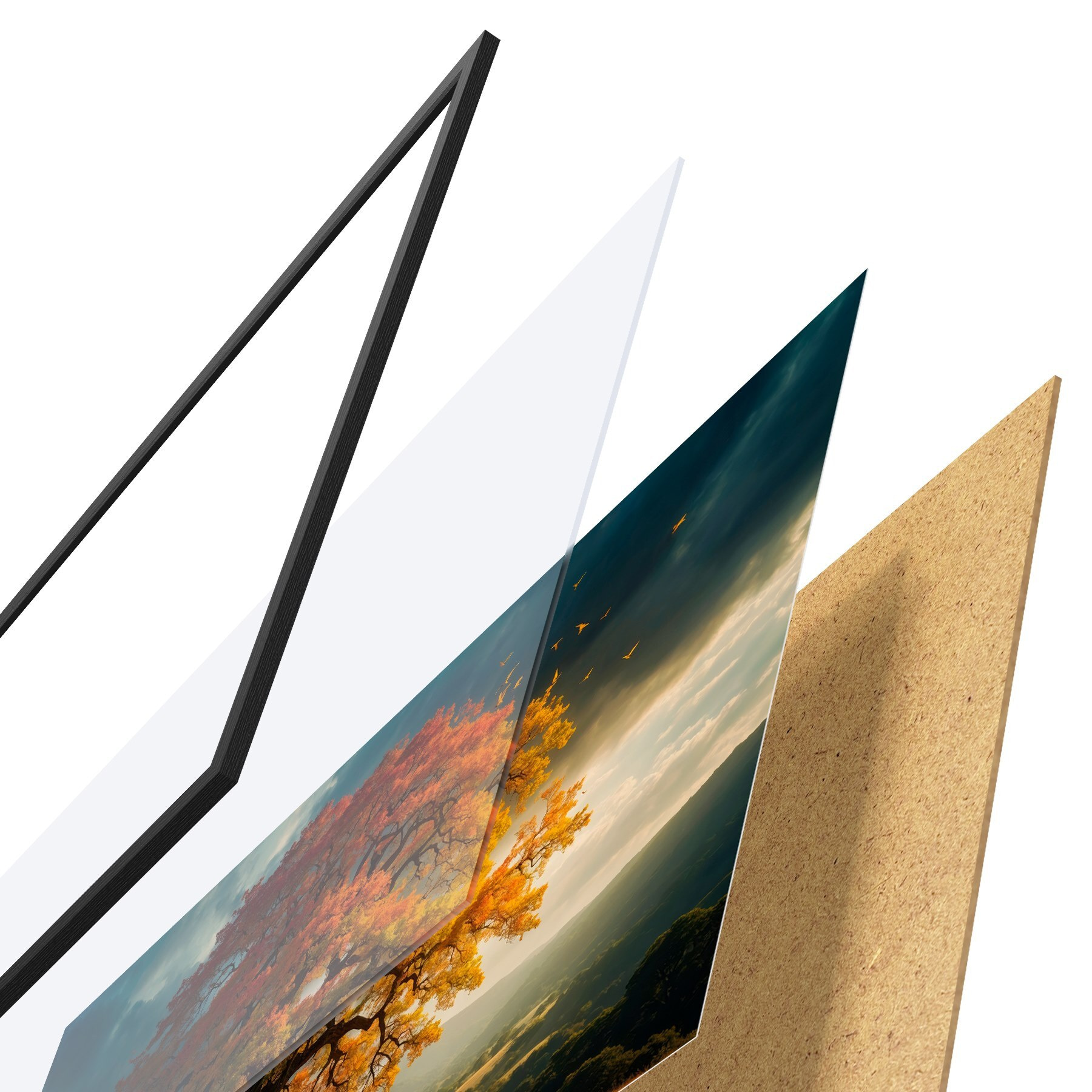 Plakatą sudaro rėmas, pleksiklas, atspausdintas vaizdas ir medžio drožlių plokštės pagrindas. Plakatą galima iš karto pakabinti ant sienos dėl kitoje pusėje esančių laikiklių.