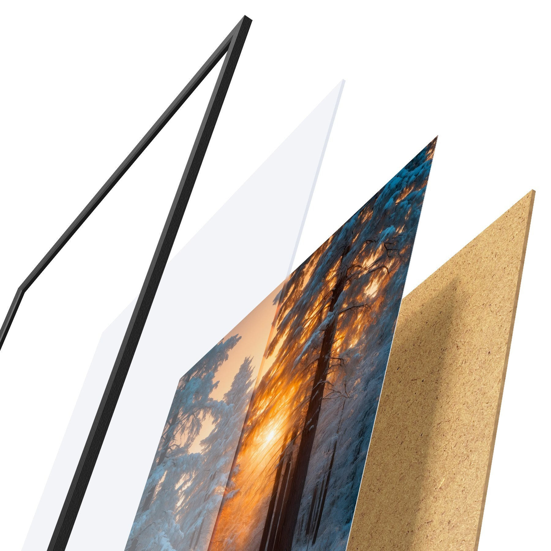 Plakatą sudaro rėmas, pleksiklas, atspausdintas vaizdas ir medžio drožlių plokštės pagrindas. Plakatą galima iš karto pakabinti ant sienos dėl kitoje pusėje esančių laikiklių.