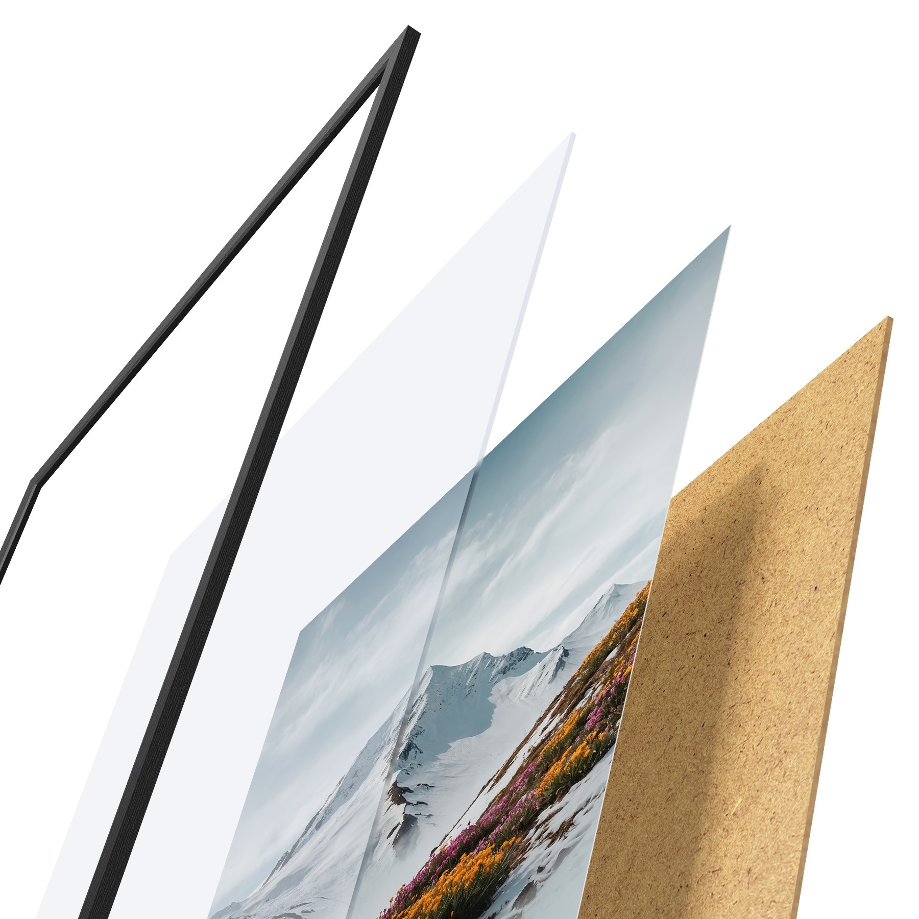 Plakatą sudaro rėmas, pleksiklas, atspausdintas vaizdas ir medžio drožlių plokštės pagrindas. Plakatą galima iš karto pakabinti ant sienos dėl kitoje pusėje esančių laikiklių.