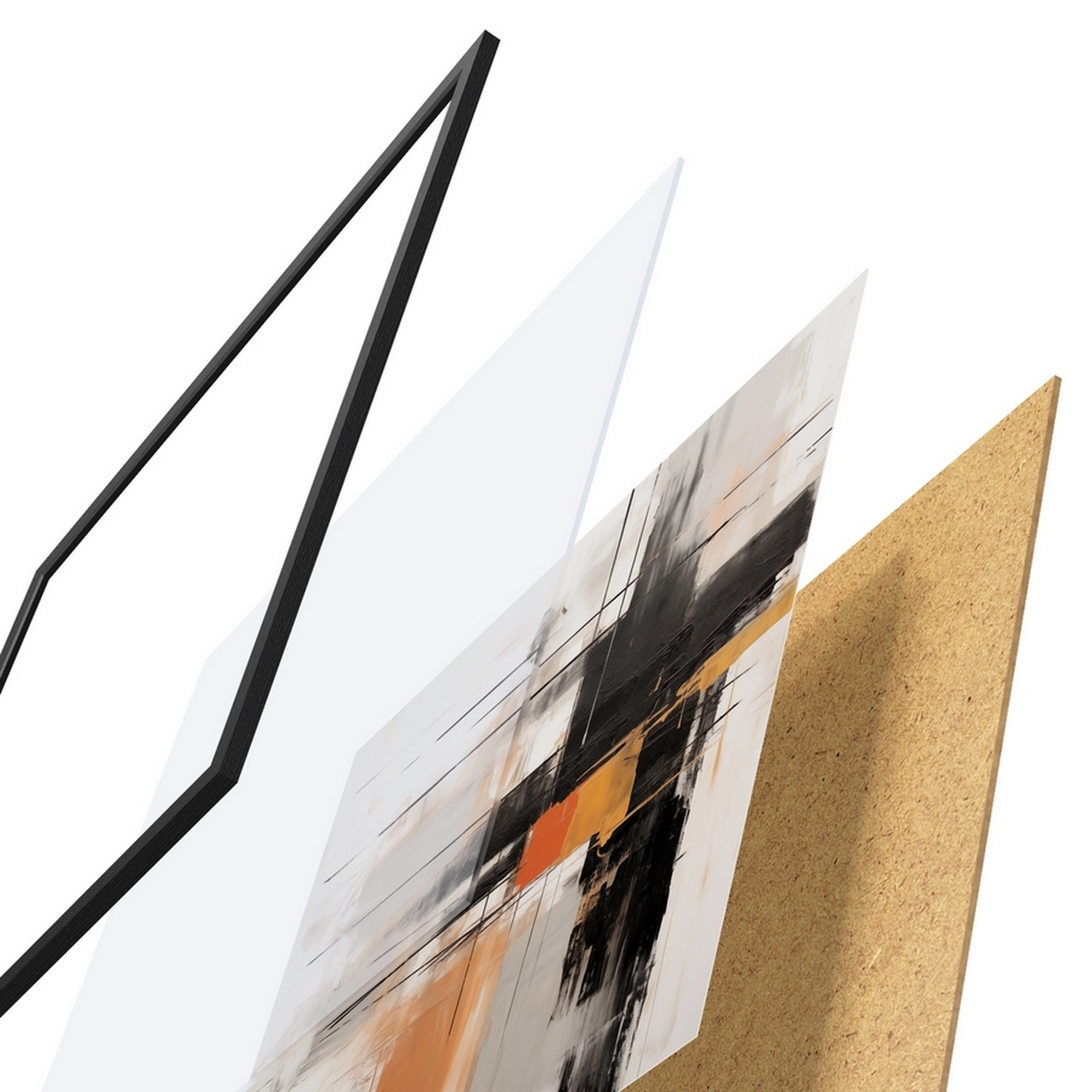 Plakatą sudaro rėmas, pleksiklas, atspausdintas vaizdas ir medžio drožlių plokštės pagrindas. Plakatą galima iš karto pakabinti ant sienos dėl kitoje pusėje esančių laikiklių.