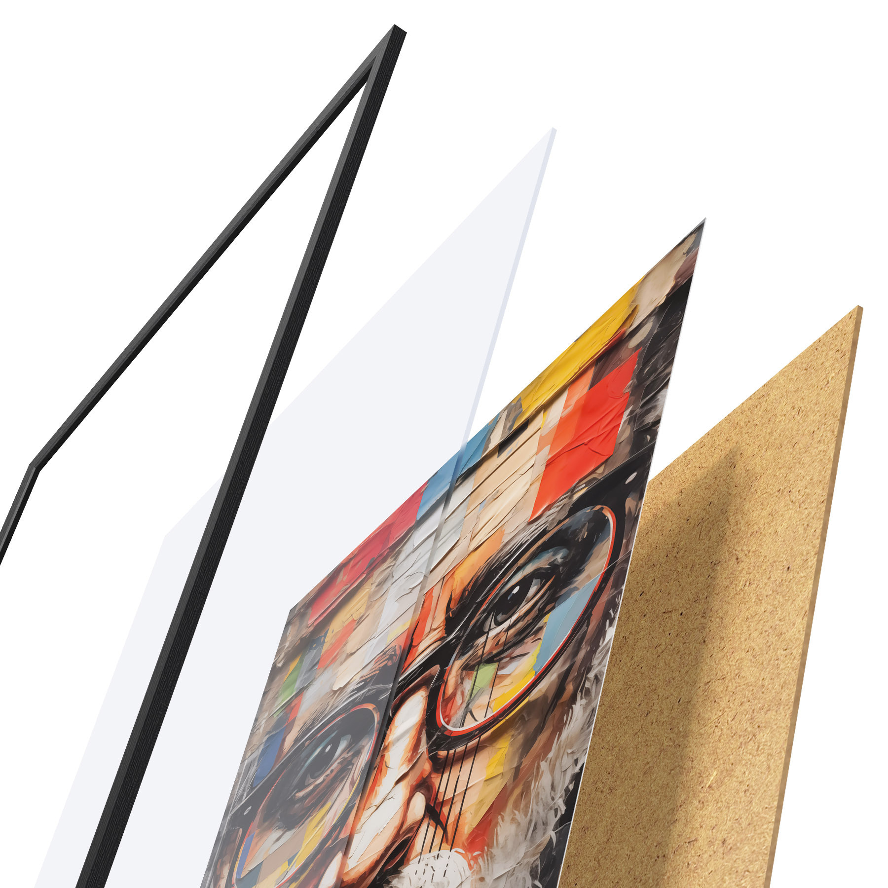 Plakatą sudaro rėmas, pleksiklas, atspausdintas vaizdas ir medžio drožlių plokštės pagrindas. Plakatą galima iš karto pakabinti ant sienos dėl kitoje pusėje esančių laikiklių.