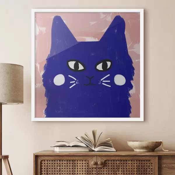 Plakatas Mėlyna katė rausvame fone, šiurkštūs potėpiai, tapybos imitacija Ne f41618