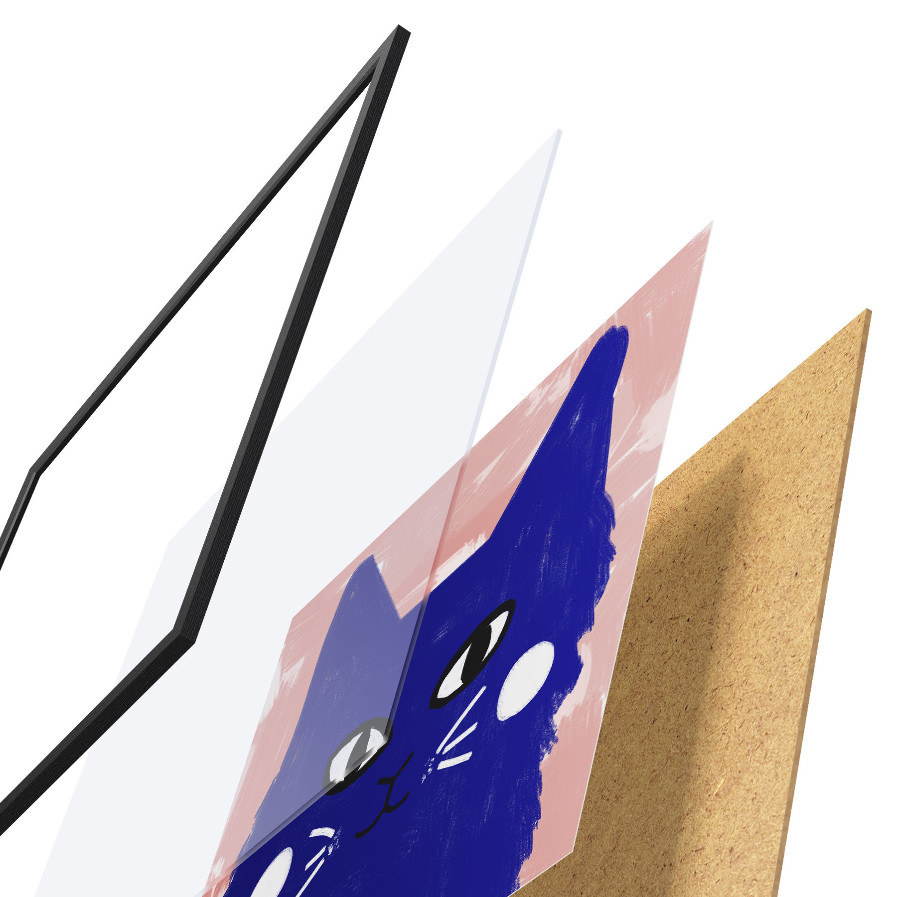 Plakatą sudaro rėmas, pleksiklas, atspausdintas vaizdas ir medžio drožlių plokštės pagrindas. Plakatą galima iš karto pakabinti ant sienos dėl kitoje pusėje esančių laikiklių.