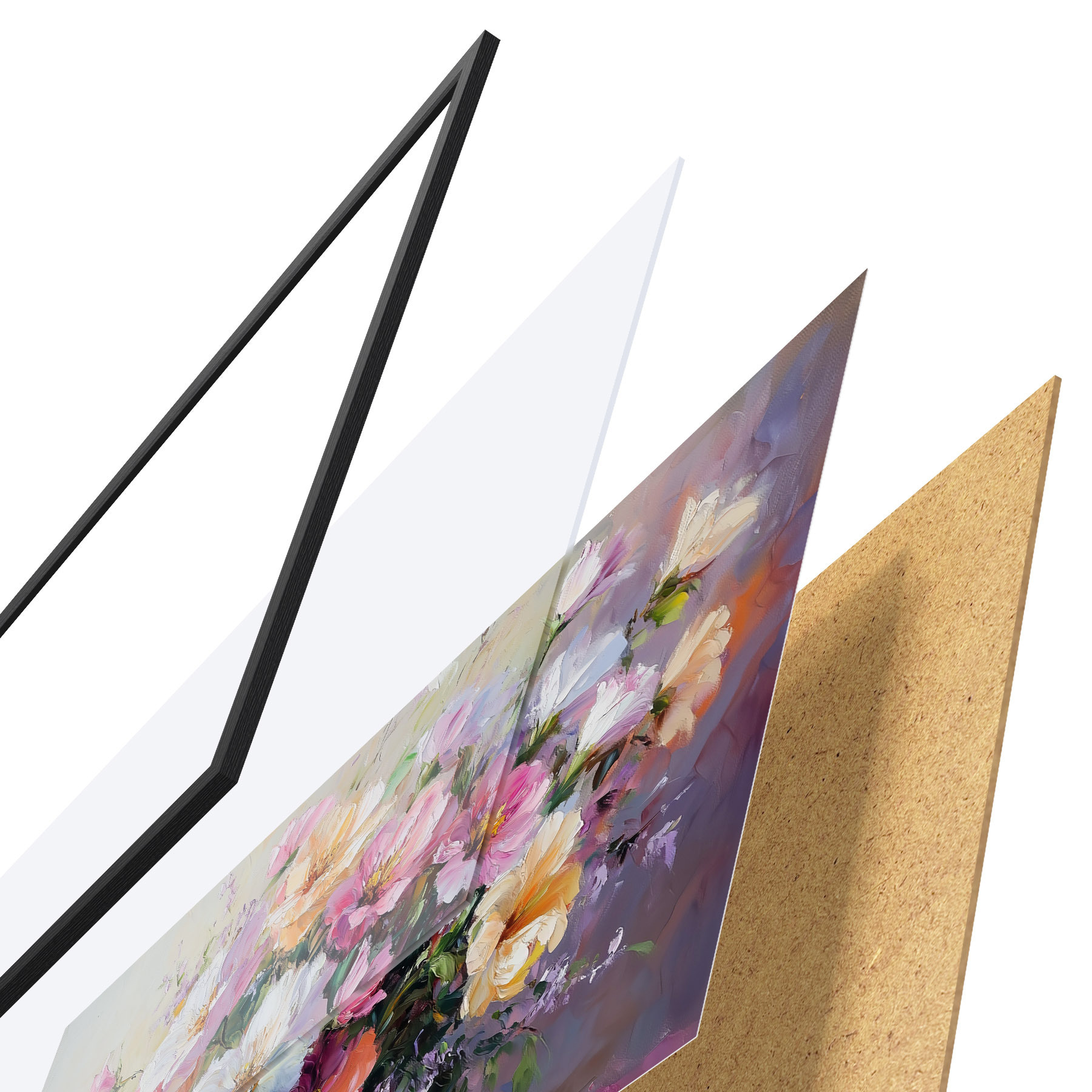 Plakatą sudaro rėmas, pleksiklas, atspausdintas vaizdas ir medžio drožlių plokštės pagrindas. Plakatą galima iš karto pakabinti ant sienos dėl kitoje pusėje esančių laikiklių.