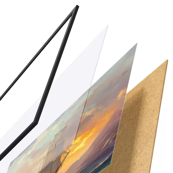 Plakatą sudaro rėmas, pleksiklas, atspausdintas vaizdas ir medžio drožlių plokštės pagrindas. Plakatą galima iš karto pakabinti ant sienos dėl kitoje pusėje esančių laikiklių.