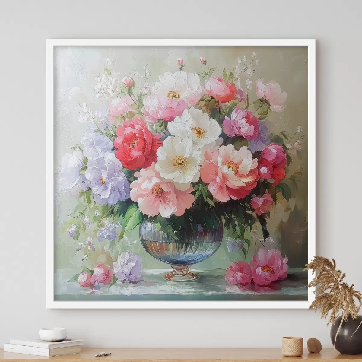 Plakatas subtilių gėlių puokštė vazoje f41635
