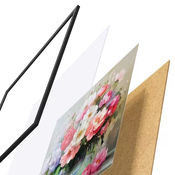 Plakatą sudaro rėmas, pleksiklas, atspausdintas vaizdas ir medžio drožlių plokštės pagrindas. Plakatą galima iš karto pakabinti ant sienos dėl kitoje pusėje esančių laikiklių.