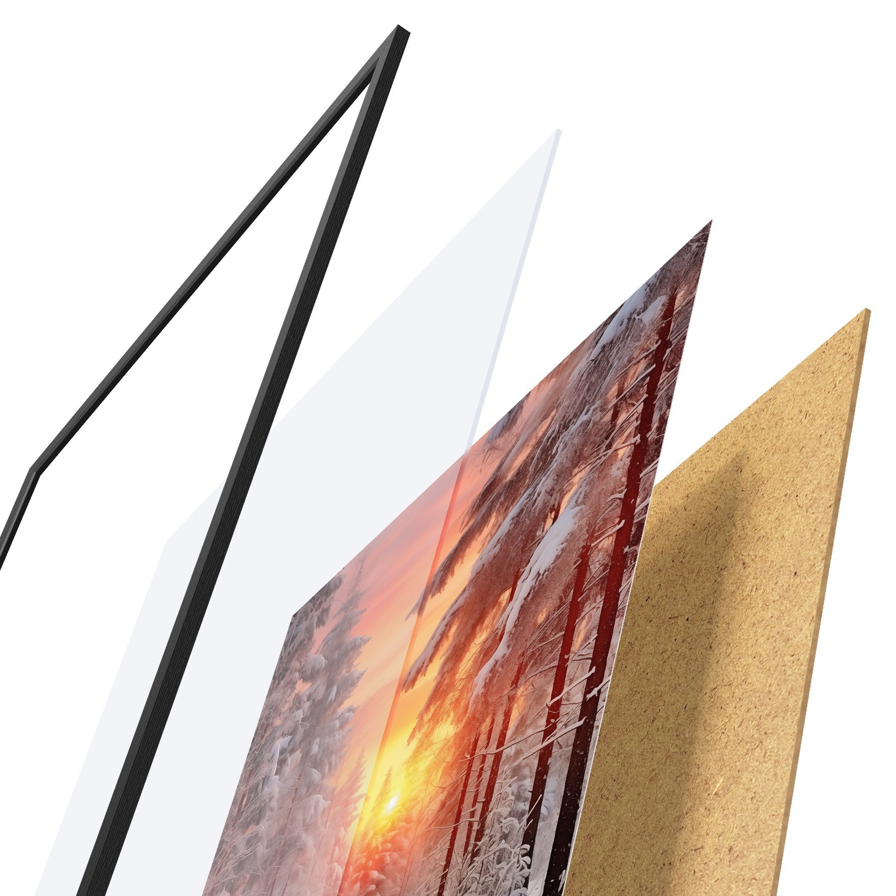 Plakatą sudaro rėmas, pleksiklas, atspausdintas vaizdas ir medžio drožlių plokštės pagrindas. Plakatą galima iš karto pakabinti ant sienos dėl kitoje pusėje esančių laikiklių.