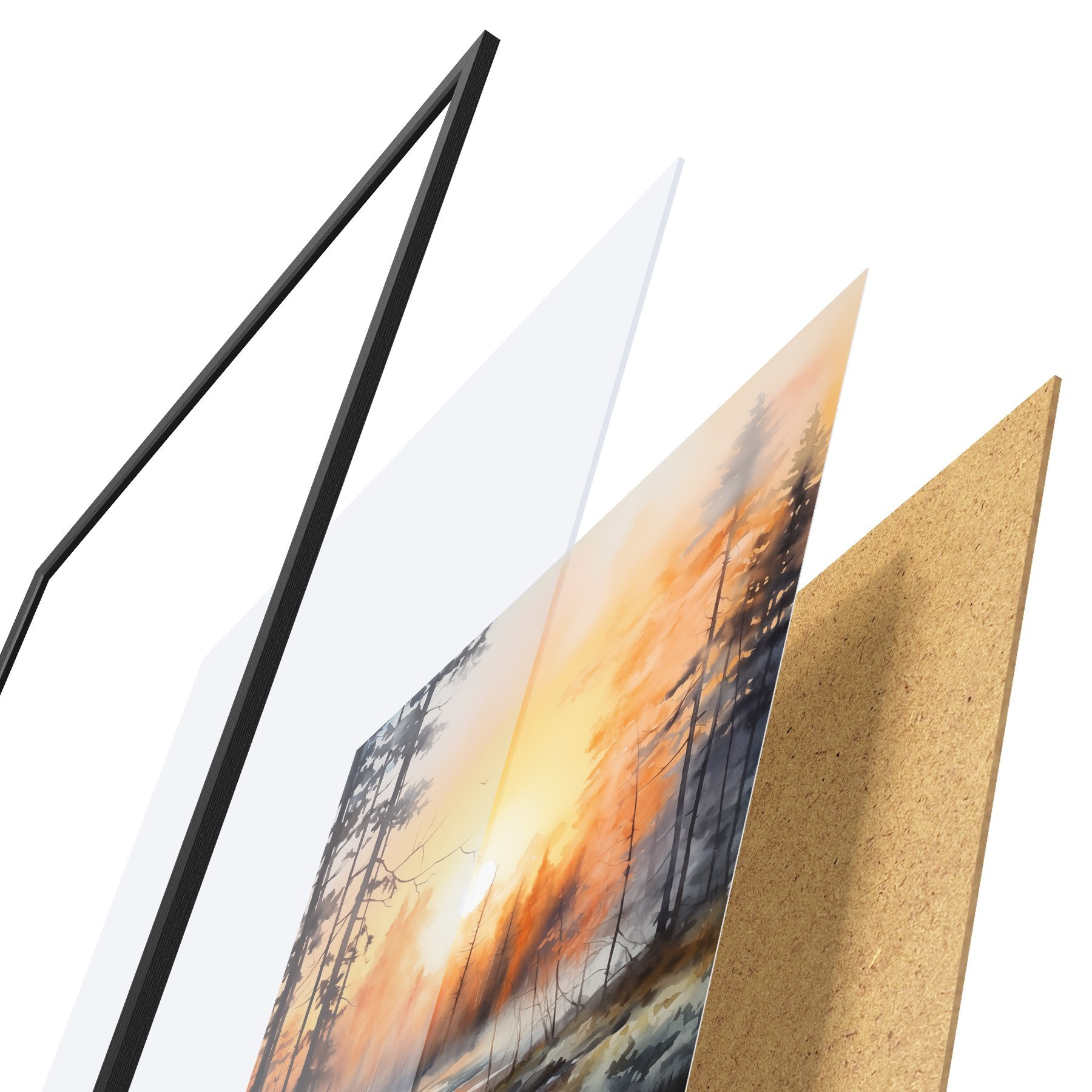 Plakatą sudaro rėmas, pleksiklas, atspausdintas vaizdas ir medžio drožlių plokštės pagrindas. Plakatą galima iš karto pakabinti ant sienos dėl kitoje pusėje esančių laikiklių.