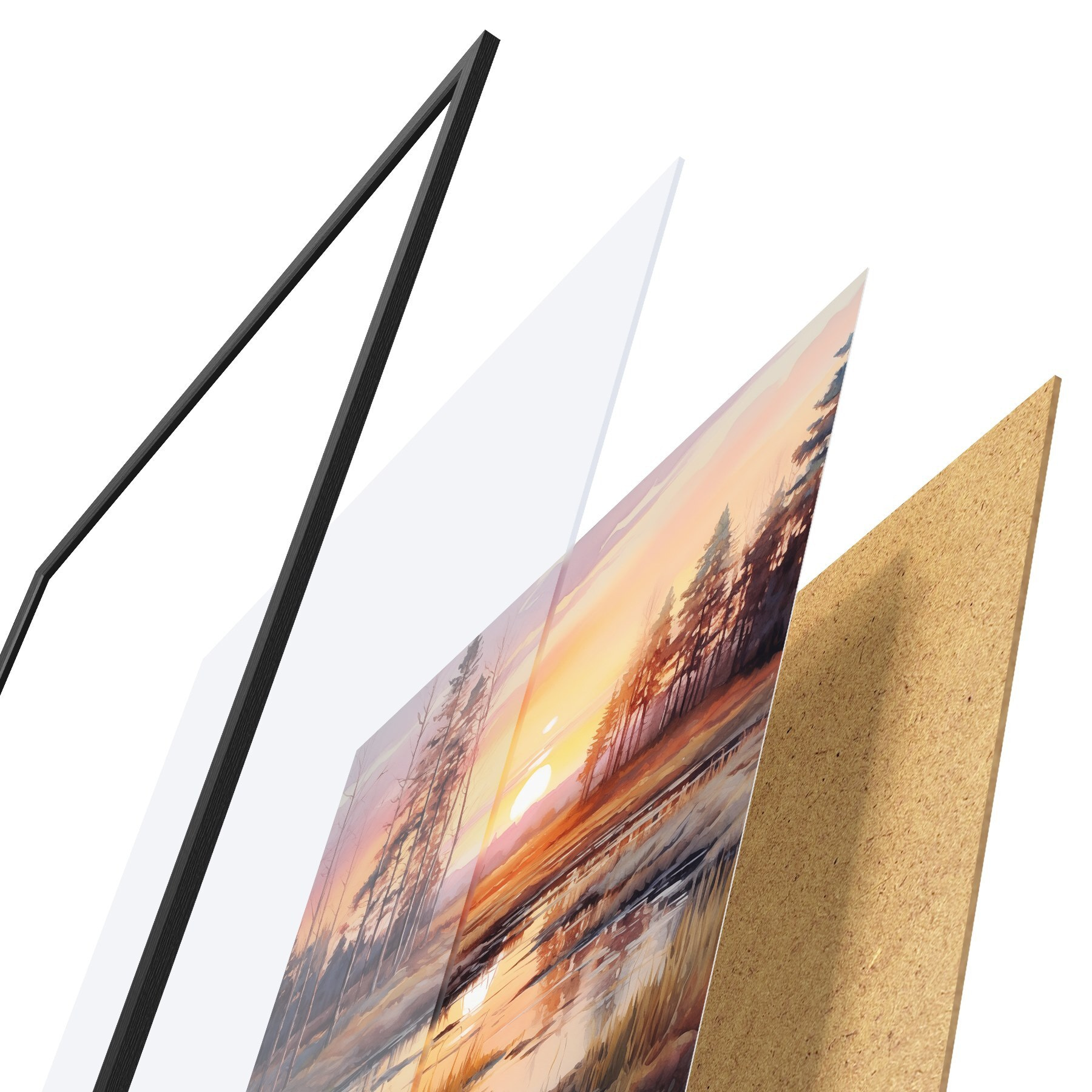 Plakatą sudaro rėmas, pleksiklas, atspausdintas vaizdas ir medžio drožlių plokštės pagrindas. Plakatą galima iš karto pakabinti ant sienos dėl kitoje pusėje esančių laikiklių.