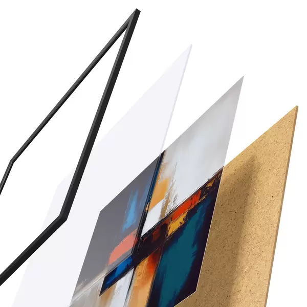 Plakatą sudaro rėmas, pleksiklas, atspausdintas vaizdas ir medžio drožlių plokštės pagrindas. Plakatą galima iš karto pakabinti ant sienos dėl kitoje pusėje esančių laikiklių.