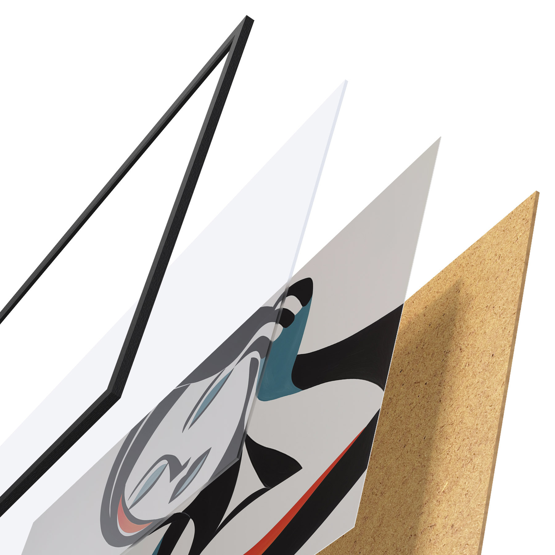 Plakatą sudaro rėmas, pleksiklas, atspausdintas vaizdas ir medžio drožlių plokštės pagrindas. Plakatą galima iš karto pakabinti ant sienos dėl kitoje pusėje esančių laikiklių.