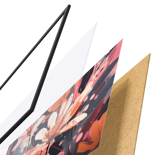 Plakatą sudaro rėmas, pleksiklas, atspausdintas vaizdas ir medžio drožlių plokštės pagrindas. Plakatą galima iš karto pakabinti ant sienos dėl kitoje pusėje esančių laikiklių.