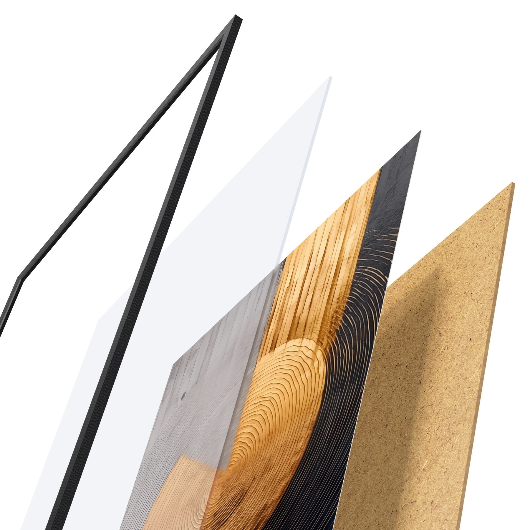 Plakatą sudaro rėmas, pleksiklas, atspausdintas vaizdas ir medžio drožlių plokštės pagrindas. Plakatą galima iš karto pakabinti ant sienos dėl kitoje pusėje esančių laikiklių.