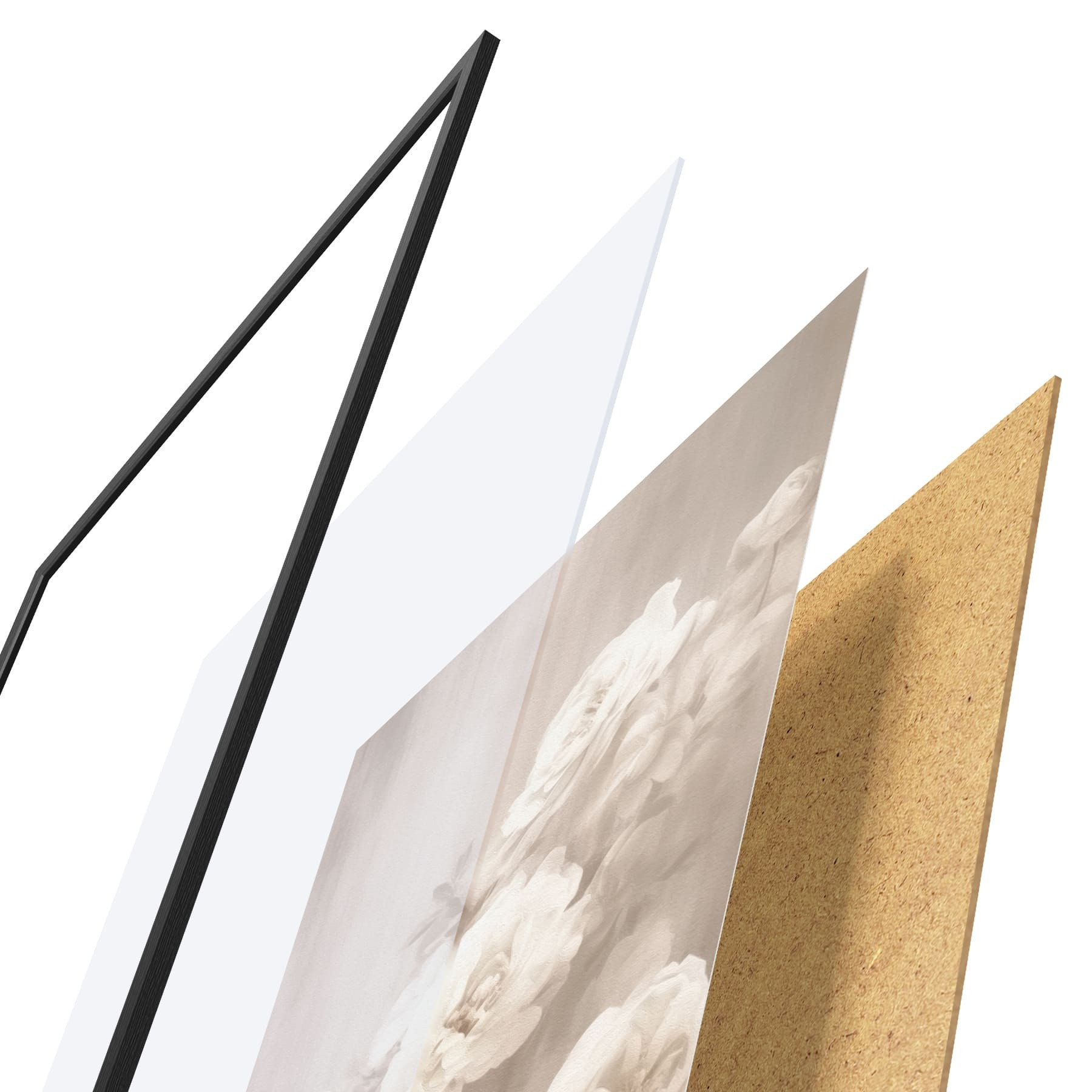 Plakatą sudaro rėmas, pleksiklas, atspausdintas vaizdas ir medžio drožlių plokštės pagrindas. Plakatą galima iš karto pakabinti ant sienos dėl kitoje pusėje esančių laikiklių.