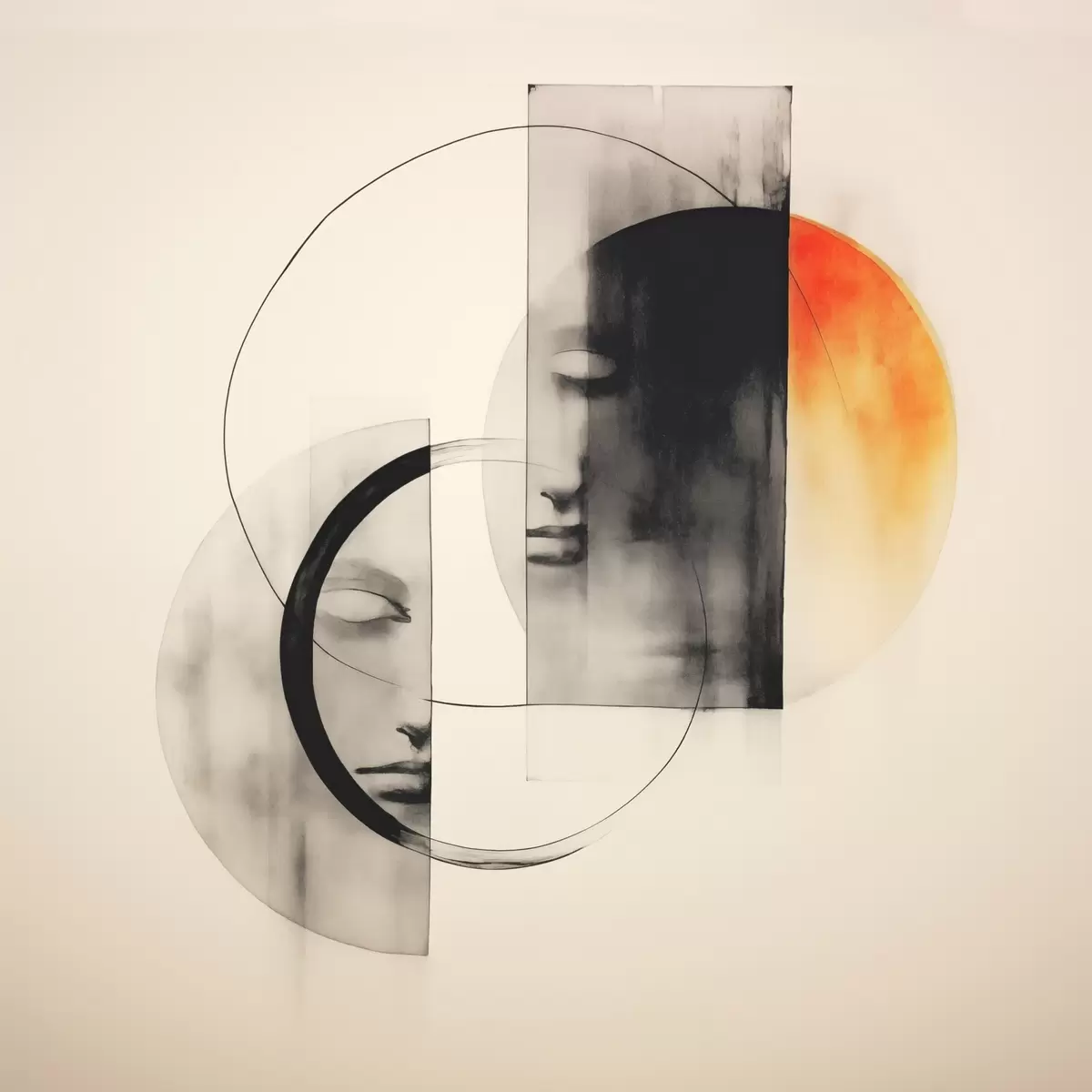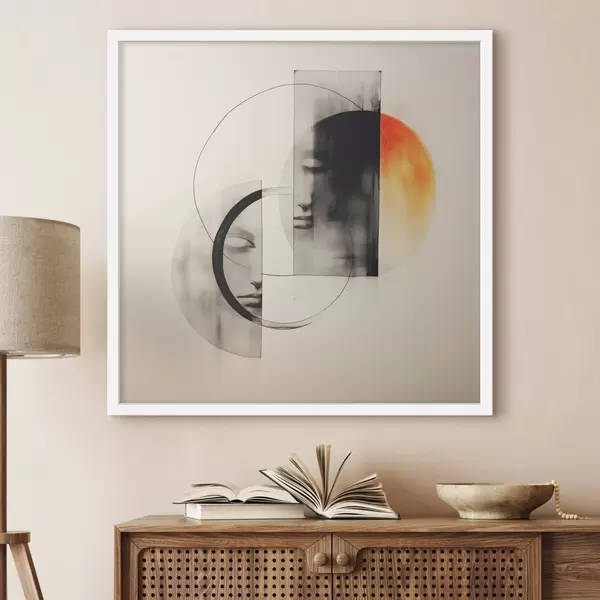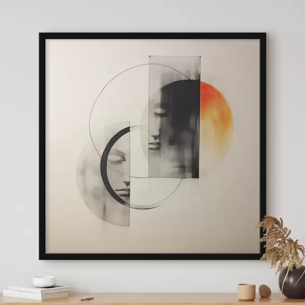 Plakatas Geometrinė kompozicija su nusidėvėjimo efektu ir abstrakčiais veidais Ne f41697