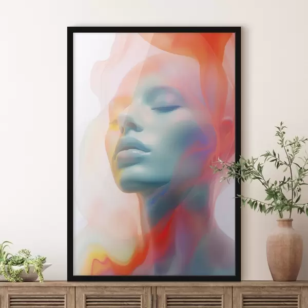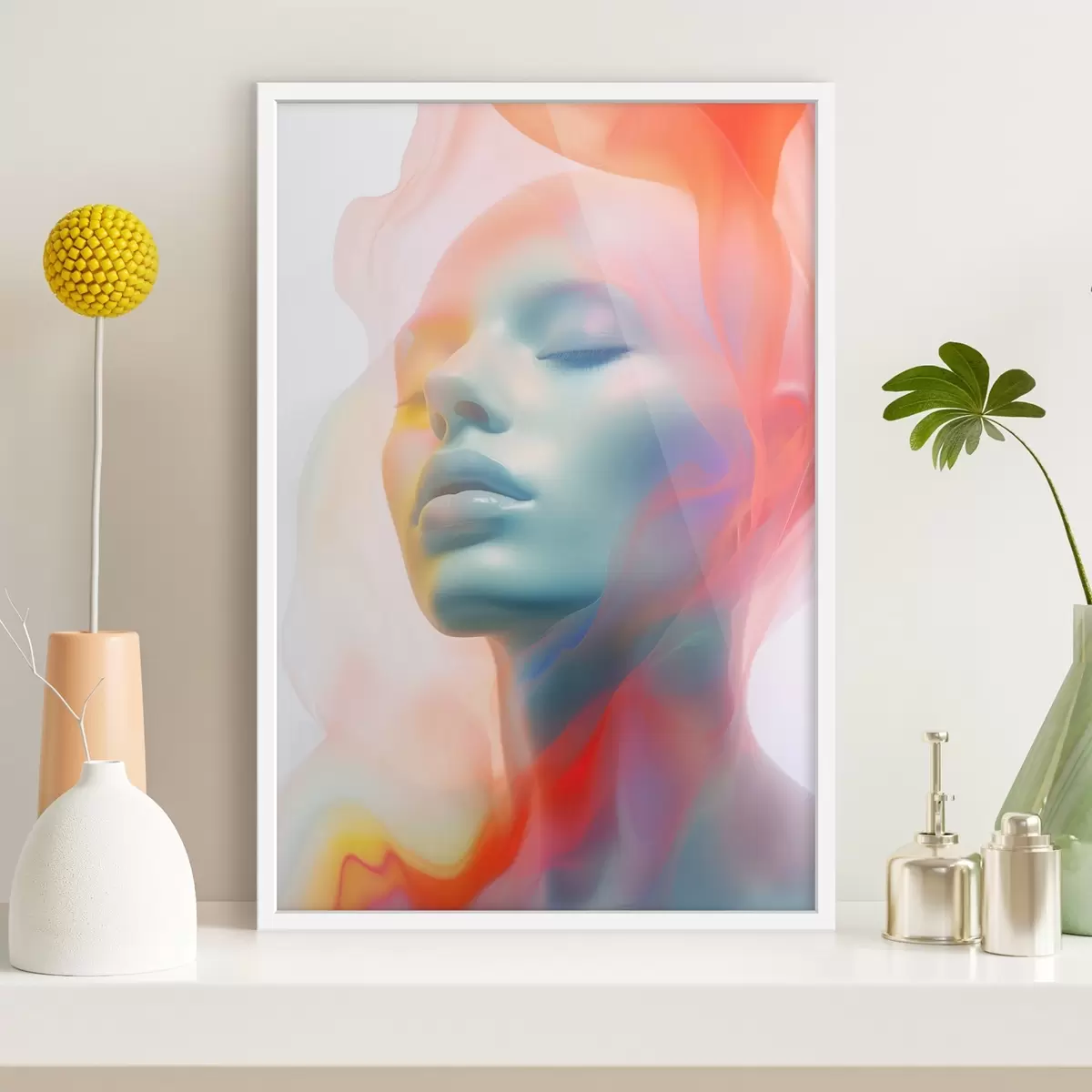 Plakatas Mergaitės portretas su abstrakčiomis spalvotomis dėmėmis f41698