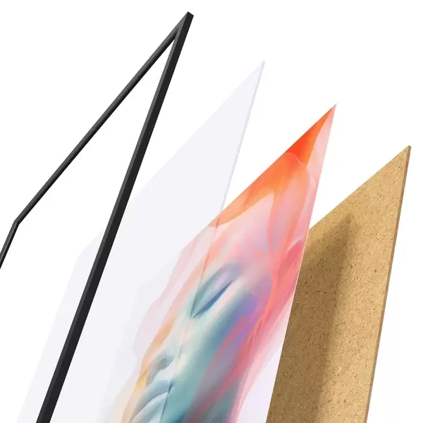 Plakatą sudaro rėmas, pleksiklas, atspausdintas vaizdas ir medžio drožlių plokštės pagrindas. Plakatą galima iš karto pakabinti ant sienos dėl kitoje pusėje esančių laikiklių.