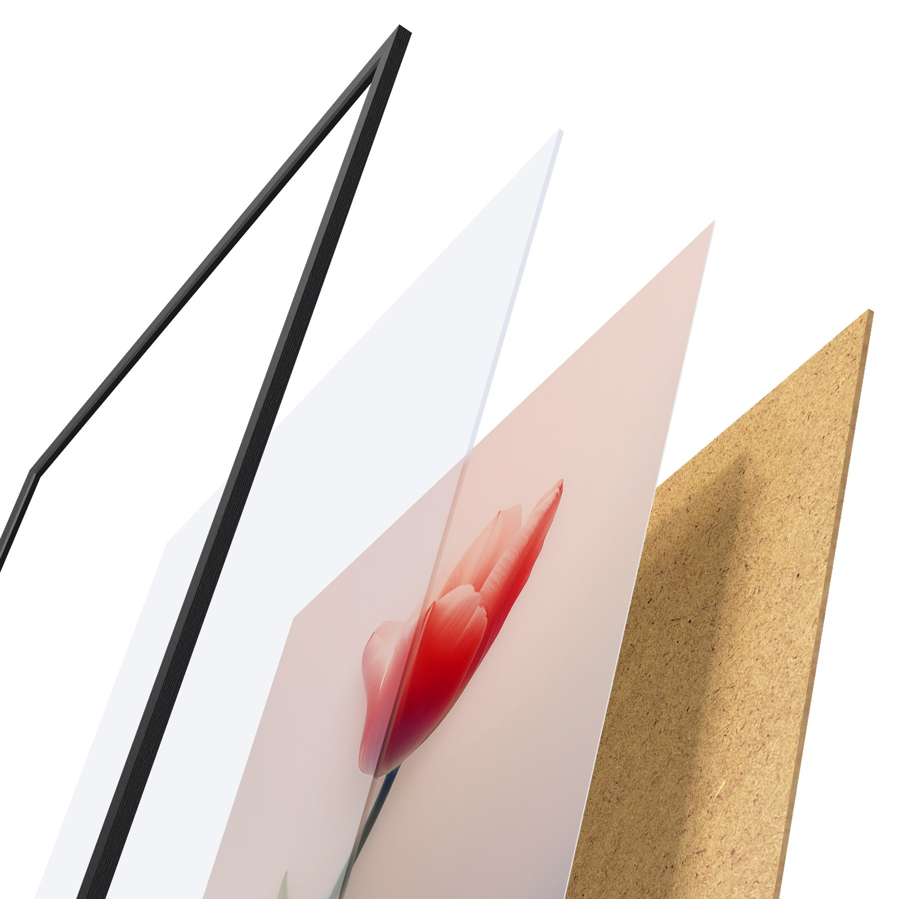 Plakatą sudaro rėmas, pleksiklas, atspausdintas vaizdas ir medžio drožlių plokštės pagrindas. Plakatą galima iš karto pakabinti ant sienos dėl kitoje pusėje esančių laikiklių.