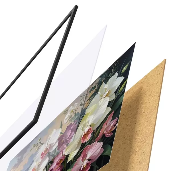 Plakatą sudaro rėmas, pleksiklas, atspausdintas vaizdas ir medžio drožlių plokštės pagrindas. Plakatą galima iš karto pakabinti ant sienos dėl kitoje pusėje esančių laikiklių.