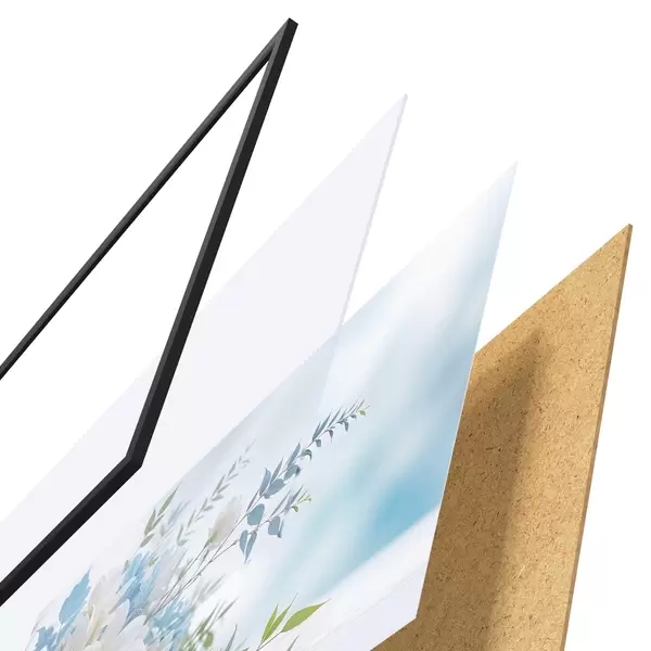 Plakatą sudaro rėmas, pleksiklas, atspausdintas vaizdas ir medžio drožlių plokštės pagrindas. Plakatą galima iš karto pakabinti ant sienos dėl kitoje pusėje esančių laikiklių.