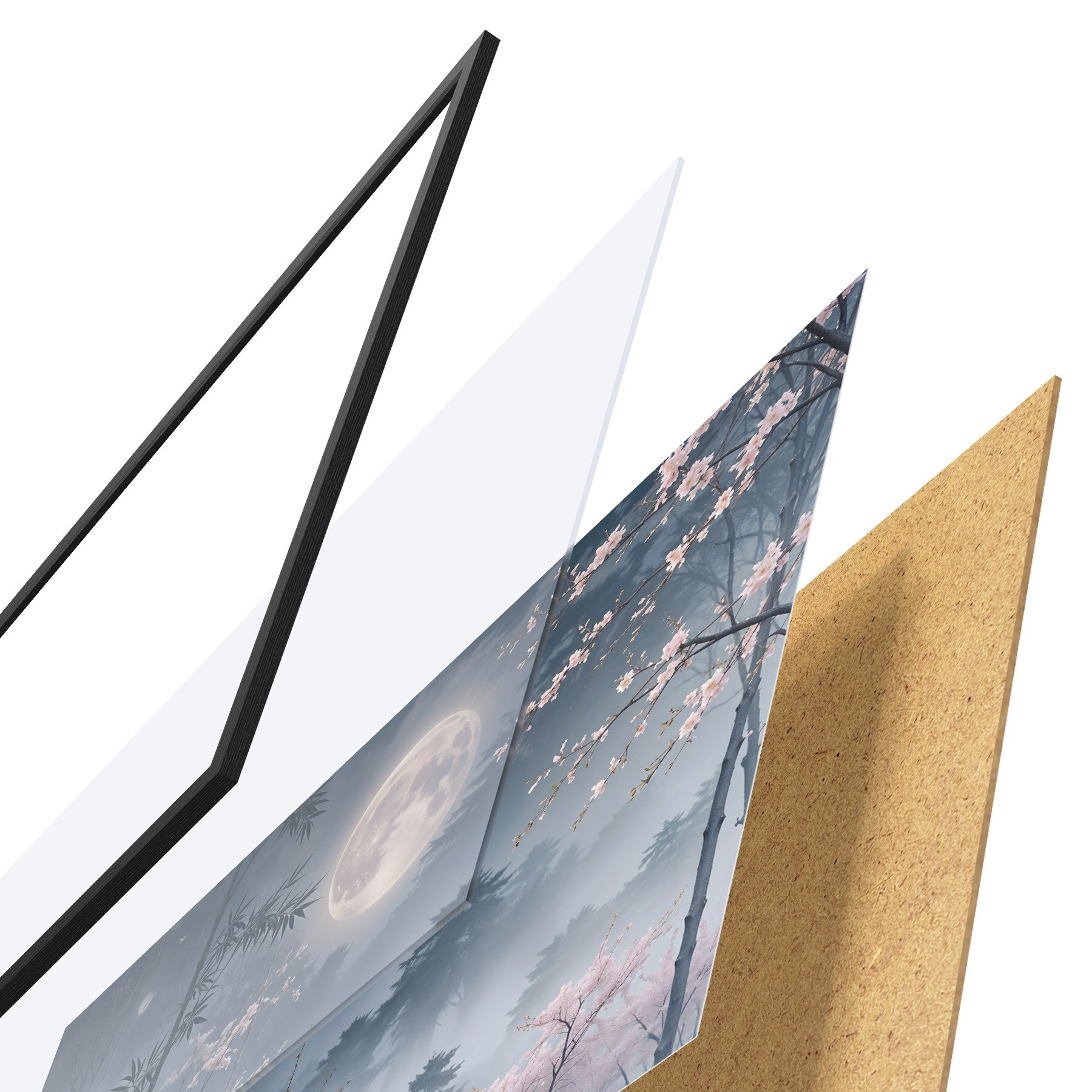 Plakatą sudaro rėmas, pleksiklas, atspausdintas vaizdas ir medžio drožlių plokštės pagrindas. Plakatą galima iš karto pakabinti ant sienos dėl kitoje pusėje esančių laikiklių.